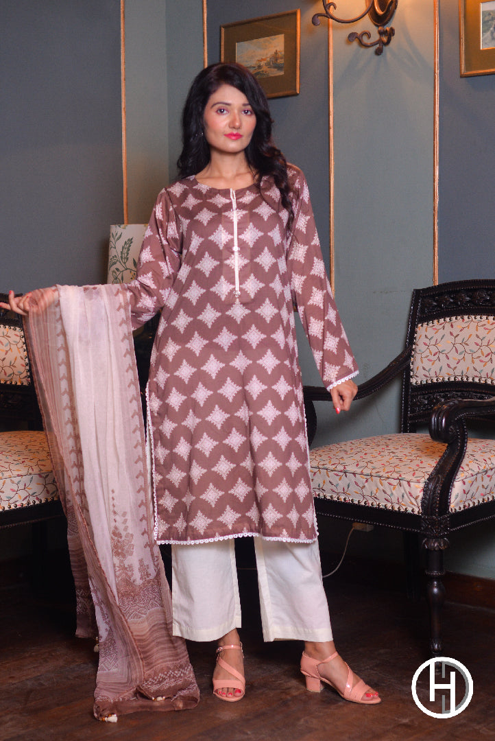 Experience unparalleled elegance and comfort with our exclusive 3 piece suit, perfect for the discerning Pakistani lady. Crafted from 100% fine lawn fabric, this suit features a rich digital print design that exudes sophistication. The set includes a stylish kurti, comfortable trousers, and a beautifully coordinated dupatta, making it ideal for summer wear.