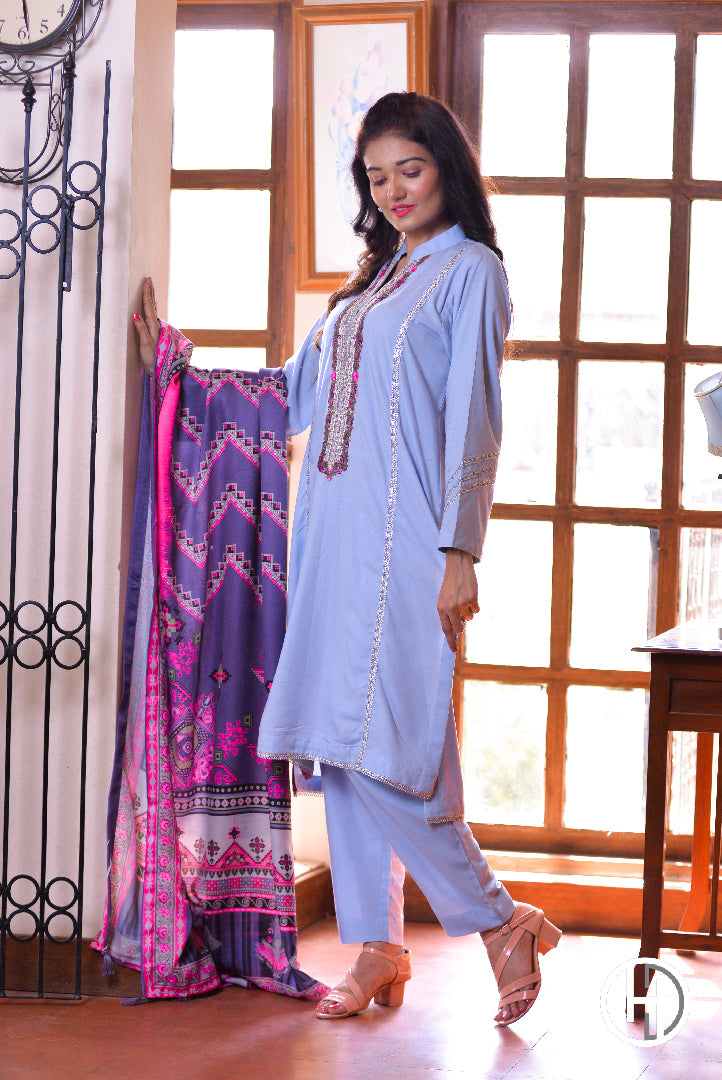 Indulge in sophistication and grace with our Light Blue Cotton Embroidery Suits, meticulously designed to reflect the timeless allure of Pakistani fashion. With their exquisite detailing and comfortable fit, these suits are a testament to elegance and style. Make a statement wherever you go with our latest collection that epitomizes sophistication and charm.