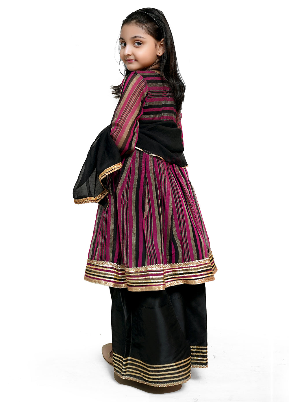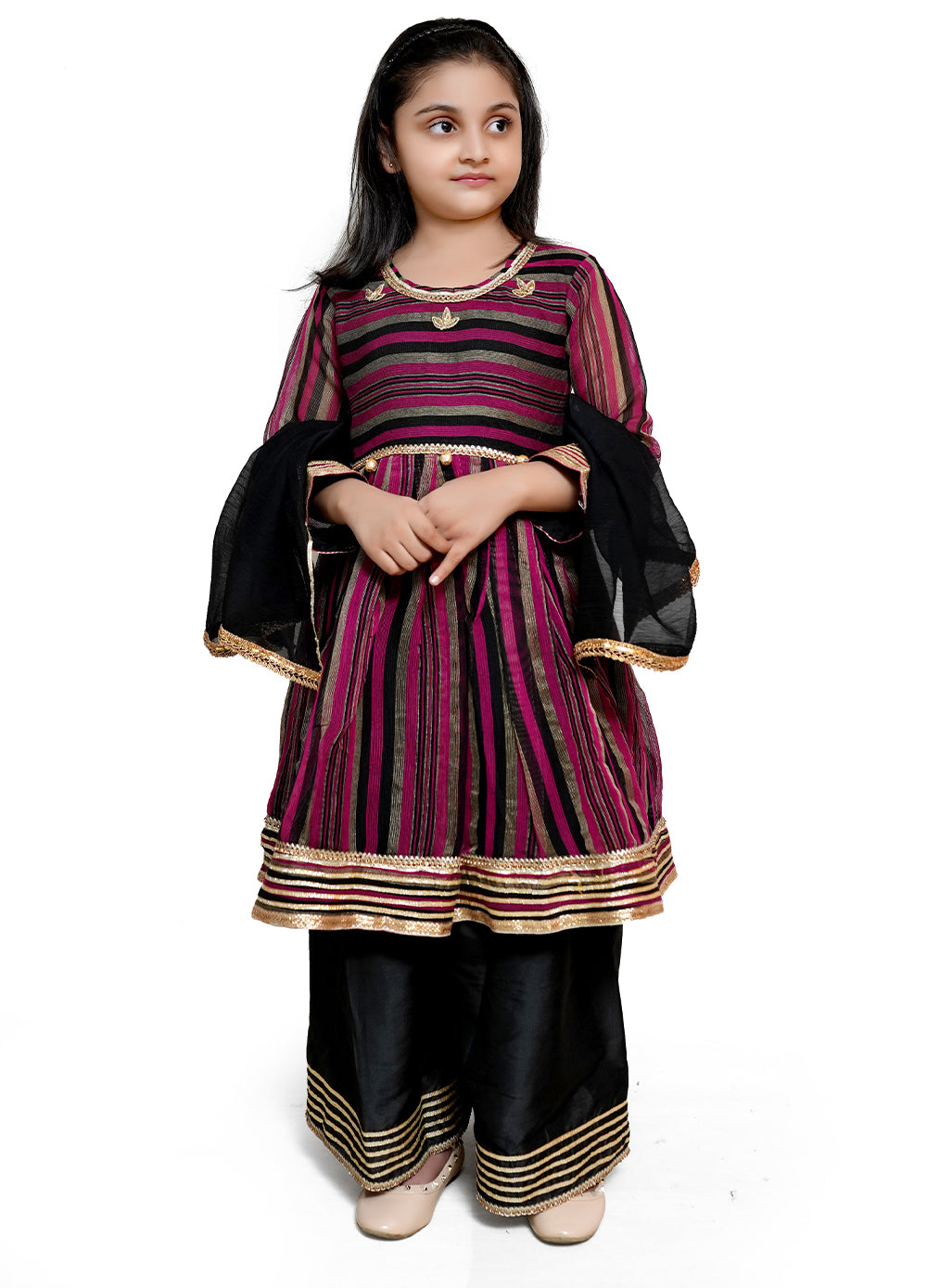 This stunning 3-piece party wear dress in dark magenta & black is made to shine! ✨