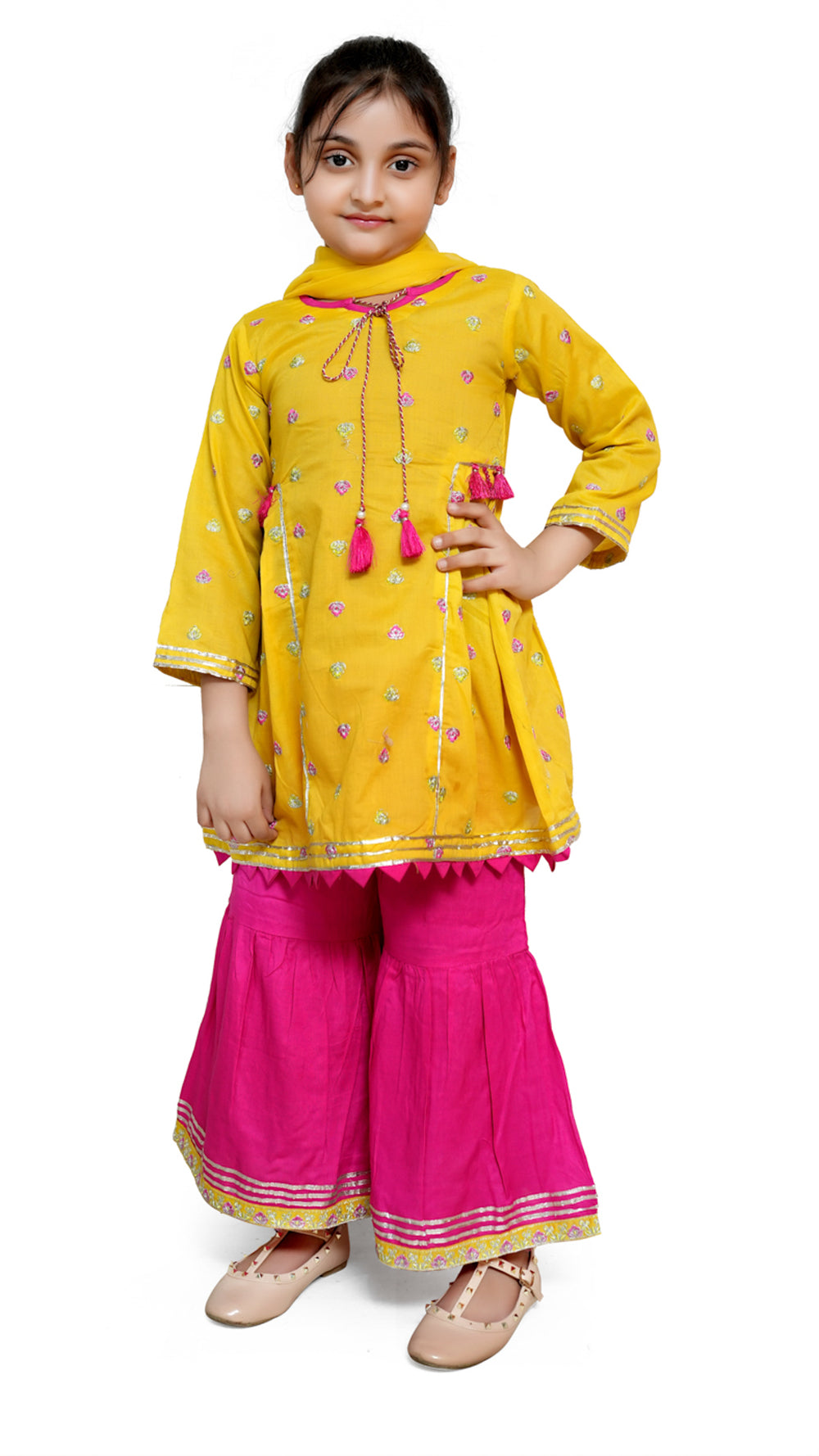 Mustard and Pink 3pc stitched suit